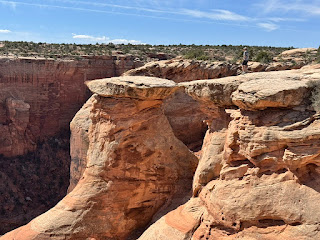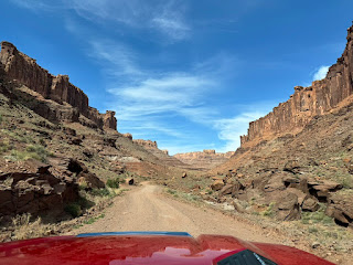April 27: For some reason we both woke up before 7a, but we were being lazy. Finally, the pups told us they needed out to do business. After attending to them, we got some potatoes, eggs, and bacon ready to test out our new grill. The pups ate their breakfast while I put everything on a cutting board in an effort to get everything I needed to cook outside in one go. I placed the cutting board on the counter and went to check if Sean needed help setting up the grill, then I heard a noise inside, but thought nothing of it. Once we got the grill leveled, I went back in to grab the food and caught 2 thieves red-handed! Skittles had grabbed the bacon off the cutting board on the counter and I saw them both helping themselves to the last remaining slice of bacon on the floor!!! Licking their lips in satisfaction of their heist! They both ended up in jail for that transgression and their mugshot is below for your enjoyment. After we got more bacon out, we grilled up a fantastic breakfast while the thieves stayed in jail. We got everything cleaned and packed up, then took pity on the prisoners and let them out. We couldn't pass up a Costco fill up, so we found ourselves winding through Salt Lake City to get some cheap diesel, lol. Soon, we were on the road again. Today’s destination - Jerome, ID. We almost passed by a watercraft inspection station on I-84, but luckily Sean pulled in and we got our inspection permit. Good thing we did because the Inspector said this is an enforced law for the state of Idaho and we would get chased down by a cop and told to turn back to this inspection station. Once we were "legal", we continued on our way. Like always, there was plenty of wind to fight against, and closer to Jerome it was raining. We eventually made it to our parking spot for the next few days at the Fairgrounds (can’t beat $20 per night). We quickly settled in and decided we needed some extra gear for kayaking, so rode the truck into Twin Falls. Once we finished shopping, we decided to see what we could of the area and visited Shoshone Falls and from there we found Centennial Trail and Sean had the wonderful idea to have us bike this path up to the Evel Knievel launch ramp site from his 1974 attempt to rocket himself across the Snake River Canyon. The trail was literally straight up 20+% grades for almost a mile, I swear… we both almost gave up and pretty sure I said I was, but we pushed on. We thought we got up the last steep section, but then there was another and another, lol. You could definitely feel the wind was worse in this section on the canyon rim and it wasn’t shy around us. If you could imagine the wind being so violent it almost blows you off a bike…it was nuts. We actually make it to the ramp and Sean convinced me to climb to the top with him. The wind was blowing the ramp dust and small rocks into our faces the whole while, but we make it! We didn’t last long at the top, lol. We actually stopped half way back down the ramp to hide behind some concrete for a brief reprieve from the wind. We headed back and it was getting late in the evening, so Sean suggested we eat out for dinner and soon found ourselves at Arctic Circle eating hamburgers & fries. I got a small shake which was similar to a Blizzard from Dairy Queen, but for some reason tasted much better. Sacrilege, I know…but it was good! We headed home and had a nice relaxing evening with the pups.